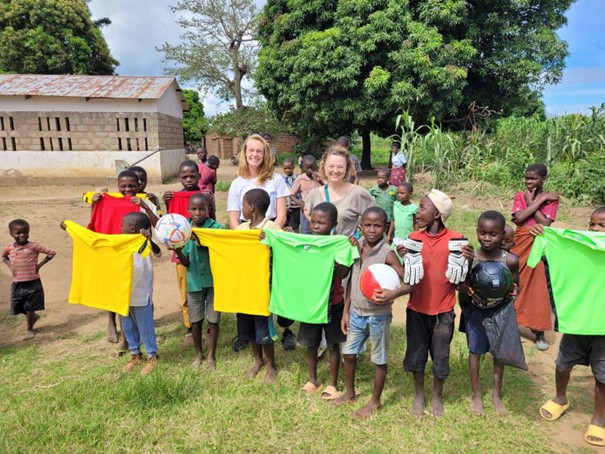 Übergabe der Fußballausstattung führte zu einem Ausbruch an Freude bei den Kids und die Neuigkeit verbreitete sich wie ein Lauffeuer in Phalombe. Anschließend fand ein Fußballturnier gegen den
